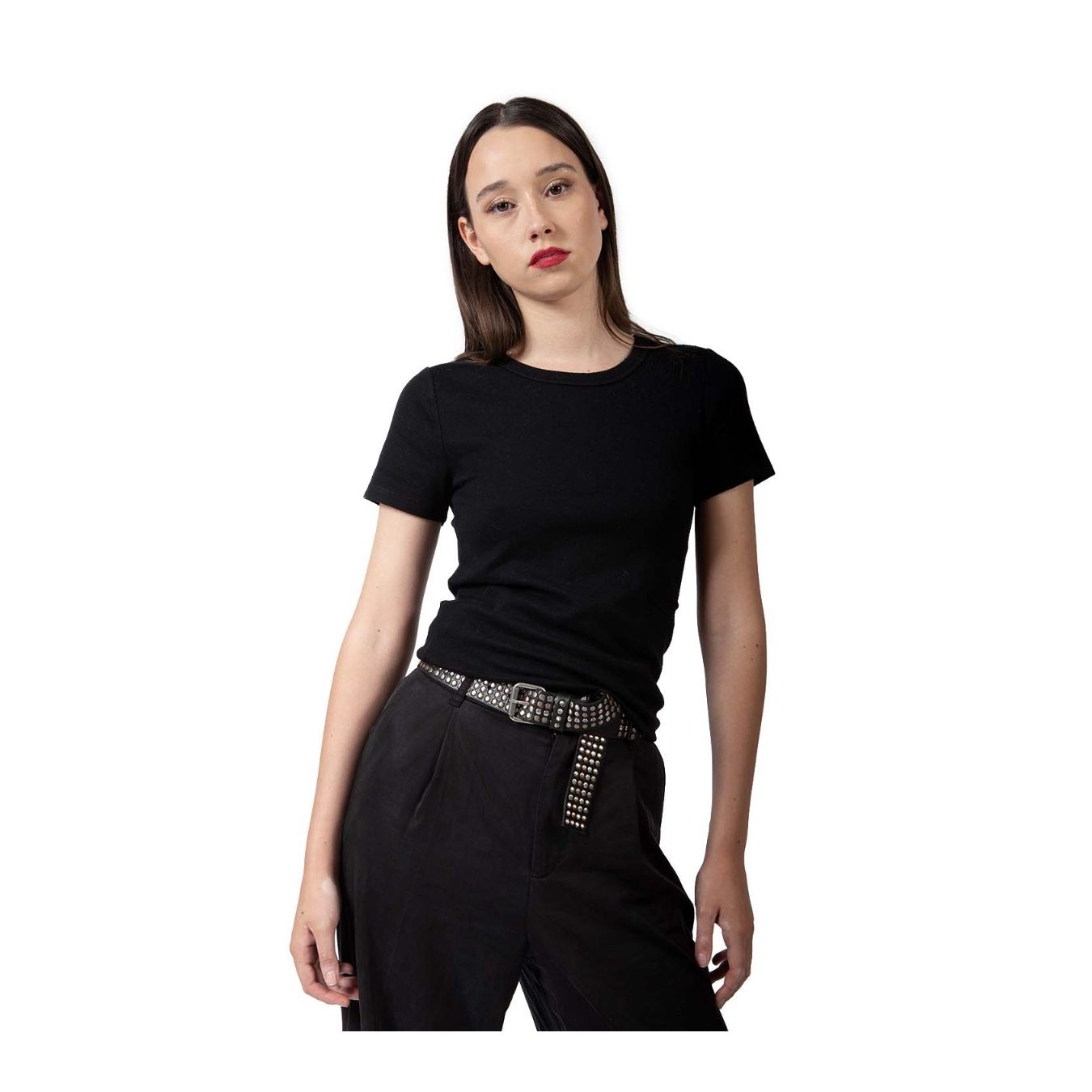 Cintura in pelle nera firmata A.S.98, un accessorio dal carattere deciso che unisce artigianalità e design contemporaneo. Realizzata in vera pelle, è arricchita da borchie metalliche che ne esaltano lo stile rock-chic. Versatile e resistente, dona personalità a jeans, pantaloni o abiti, completando ogni outfit con un tocco distintivo e autentico, perfetto per chi ama distinguersi.