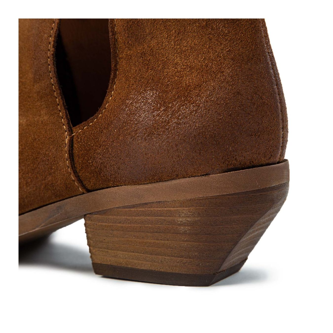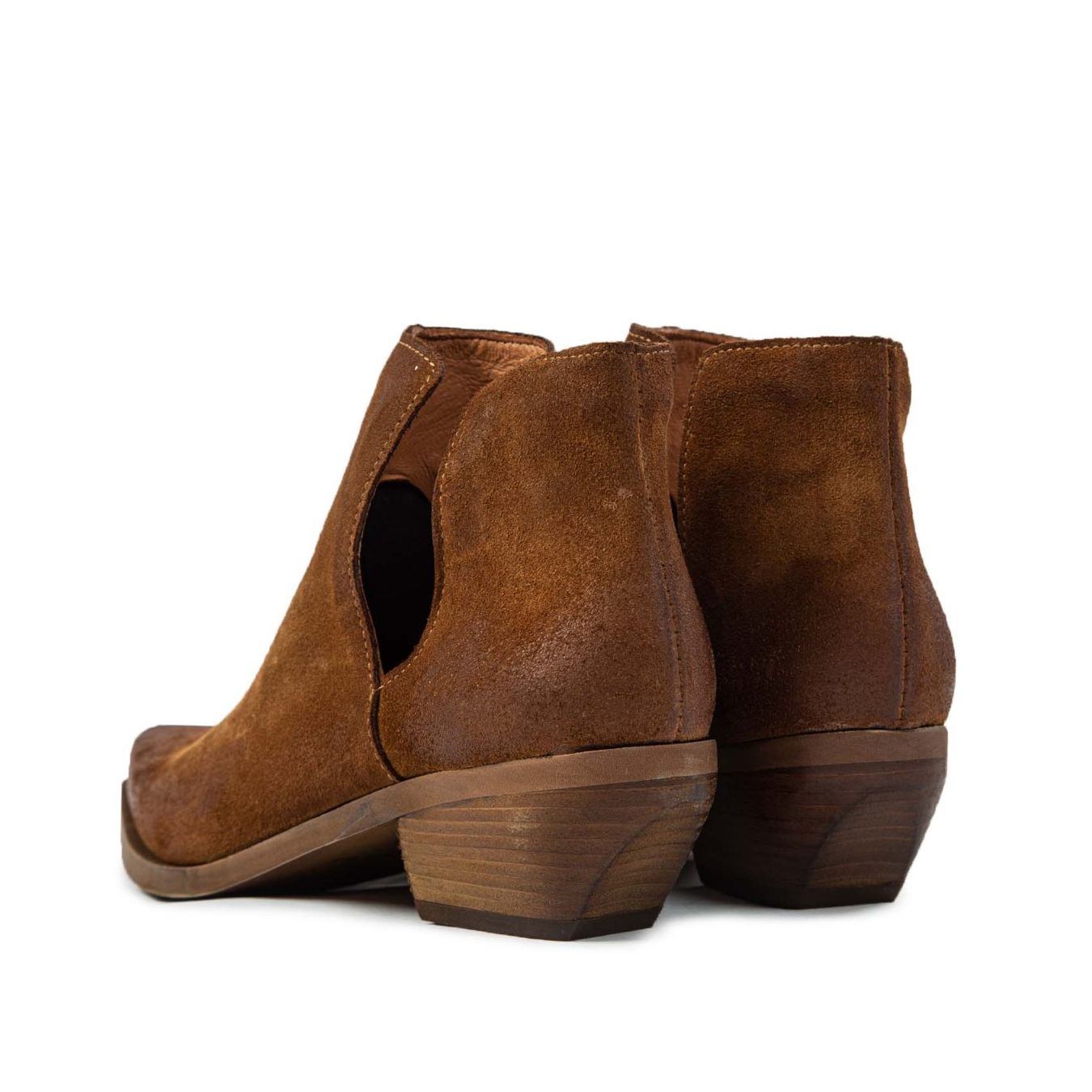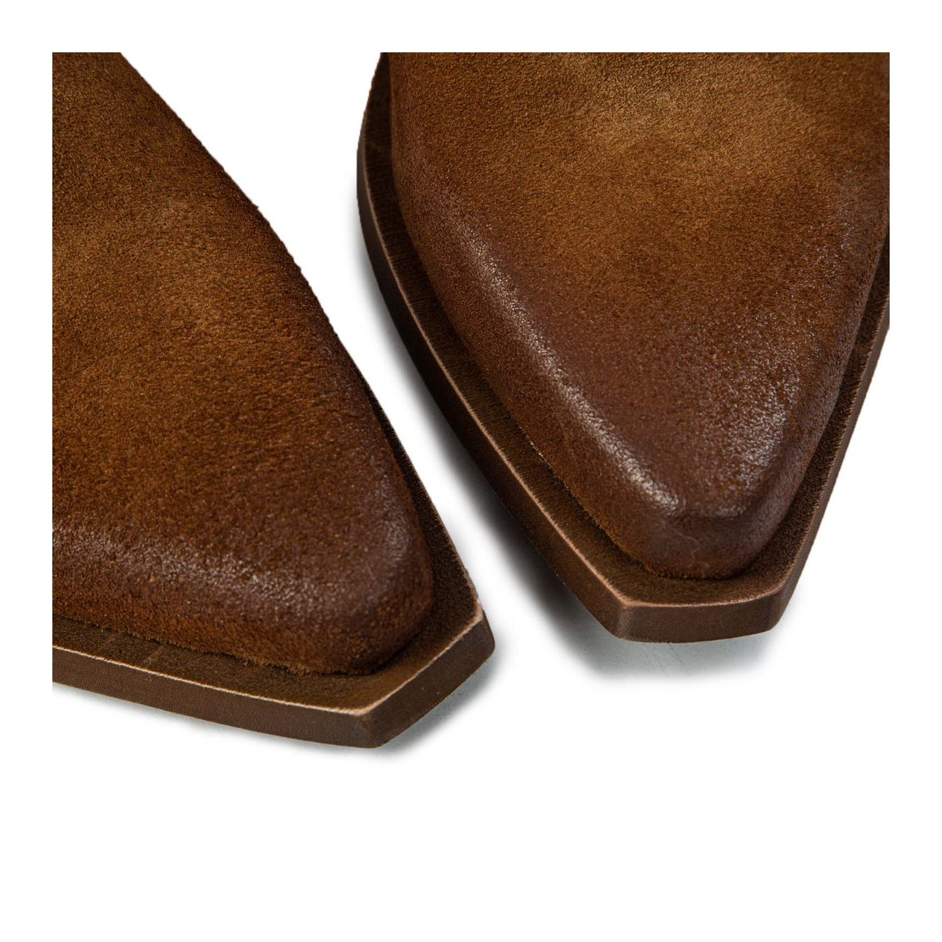 Tronchetto in camoscio color cuoio firmato Uma, dal design essenziale e raffinato. Realizzato in morbida pelle scamosciata, è caratterizzato da una linea pulita e versatile, perfetta per completare look casual o più curati. Comodo e femminile, è ideale per accompagnarti ogni giorno con stile e qualità artigianale.