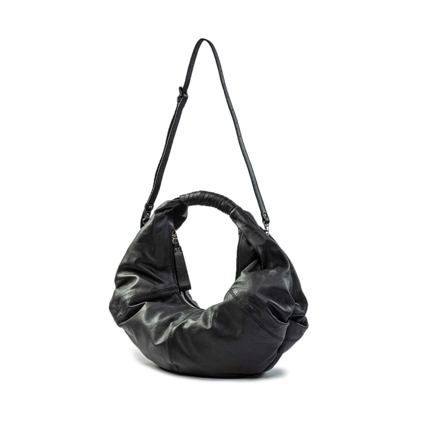 Borsa monospalla Vic Matiè realizzata in pelle nera di alta qualità, dal design deciso e contemporaneo. La linea essenziale è arricchita da dettagli ricercati e finiture curate, espressione dell’artigianalità Made in Italy. Pratica e versatile, è ideale per completare look urbani ed eleganti con un tocco grintoso e sofisticato.