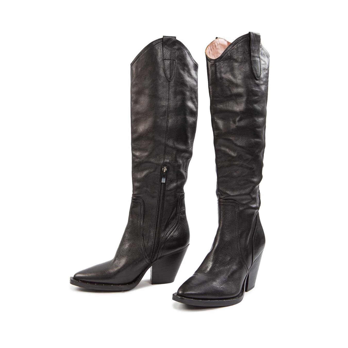 Gli stivali texani in pelle nera Curiositè uniscono carattere e femminilità in un design iconico. Realizzati in pelle morbida e rifiniti con ricami e linee tipiche del western, offrono comfort e stile in ogni occasione. Perfetti per dare personalità ai look quotidiani, aggiungono un tocco deciso e contemporaneo senza rinunciare all’eleganza.